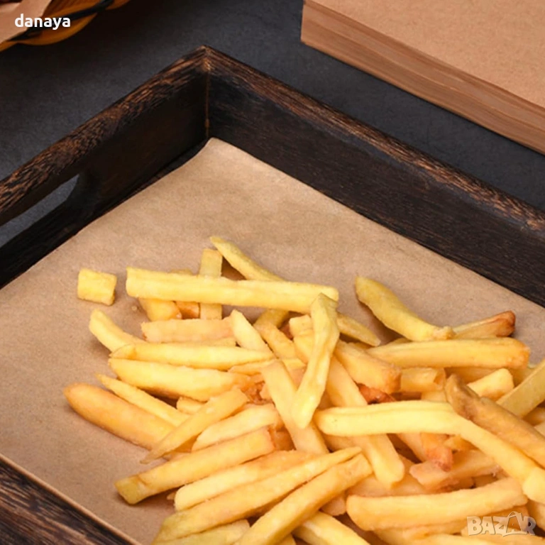 Малкият размер може да се използва и в по-големи Air Fryer кошници, като при необходимост хартията се подгъва или изрязва според формата на кошницата. Големият размер е предназначен основно за фурна и тави и не е подходящ за директна употреба в Air Fryer без изрязване.