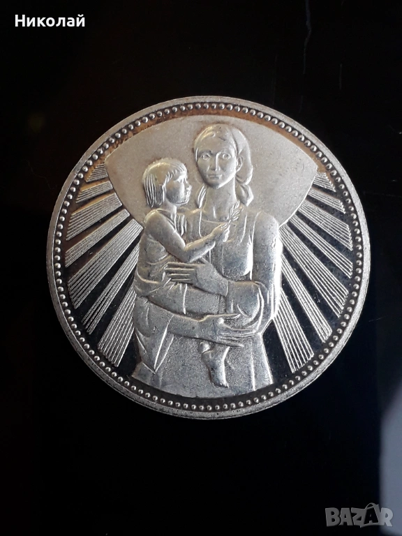 сребърна монета от 25 лева 1981г. Майка с дете. → Обява 53212959