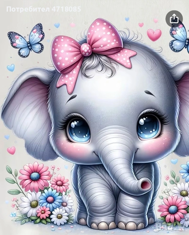 Подарете усмивка на вашето дете с тази очарователна детска тениска със сладко слонче, украсено с нежна розова панделка, цветя и пеперуди! Перфектен избор за малки принцеси, които обичат цветни, весели и нежни дизайни.