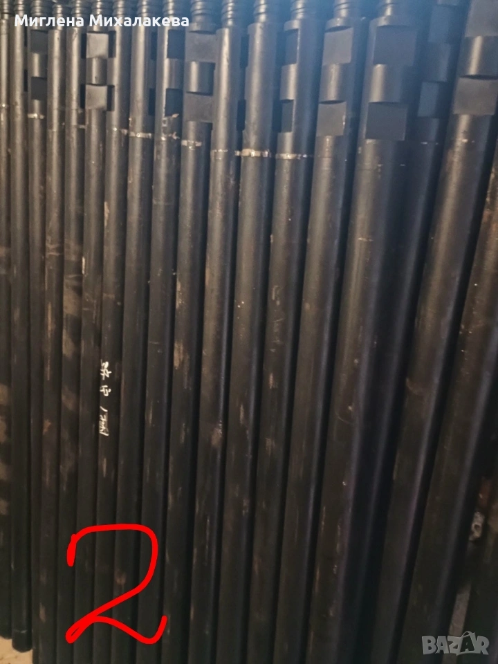 На първа и втора снимка,сондажни лостове 1500 мм, 60мм -дебелина,40мм-захватЦена за един брой 135,49 euro. На трета снимка вид длето, размер на първа предна част 150мм и втори проширител 265 мм. Пробива меки скали глини,мергели, пясък.Комплекта е 894,76 euro. Може със резервна предна част+ 286.32 euro на четвъртата снимка.На последна пета снимка Водна помпа 3 цола 357,90 euro