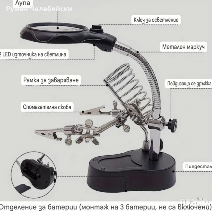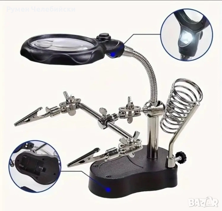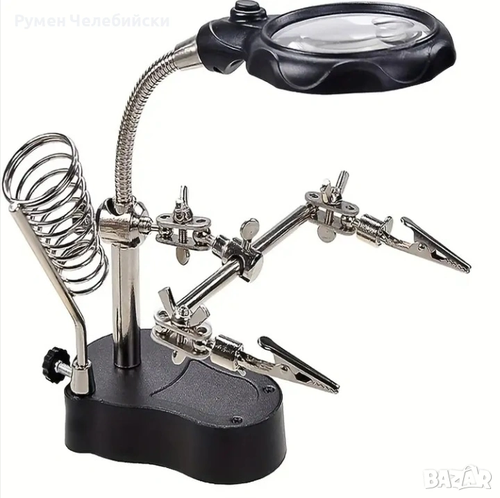 1 комплект Професионална електронна инспекционна и ремонтна станция | Издръжлива регулируема сгъваема стойка с вградена осветена лупа, ергономична основа за електроника, часовници, ремонт на мобилни телефони - захранвана от батерии