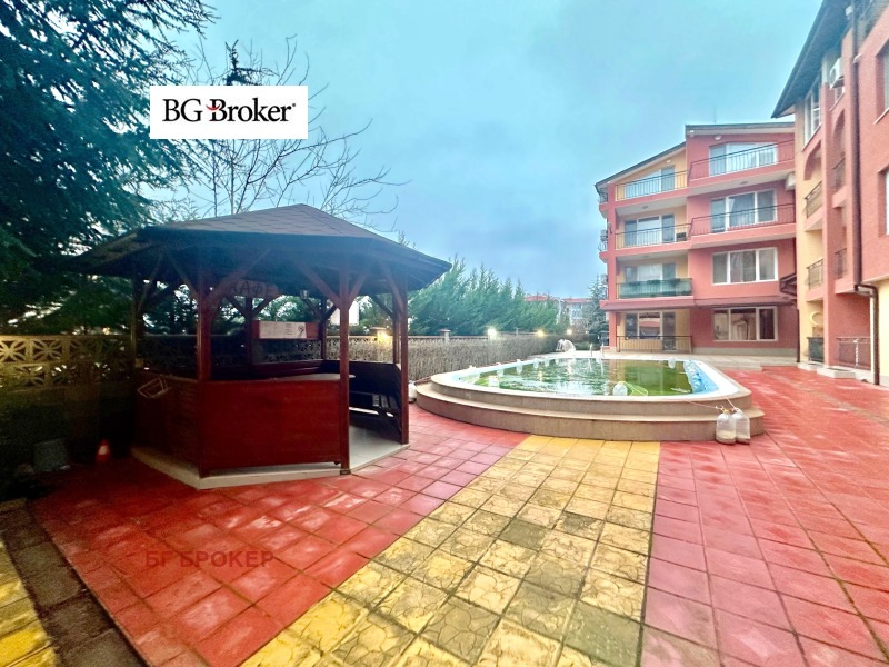 BG Broker продаваме двустаен апартамент в гр. Несебър, кв. Аурелия, на 5-6 мин пеша от плажа. Имотът се намира на ПАРТЕР в комплекс от две сгради с басейн. Площта му е около 63 кв.м. Изложение: юг. Към апартамента има прилежащо мазе/склад около 7кв.м.