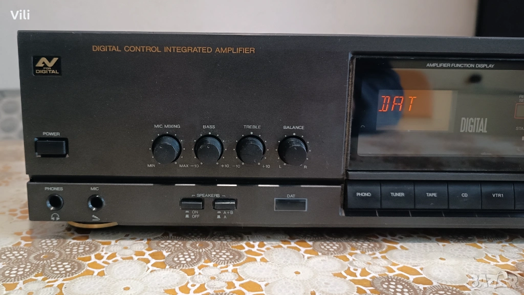 Входове: Phono, CD, Tuner, VTR 1 / VTR 2, Tape, MIC (микрофон).
