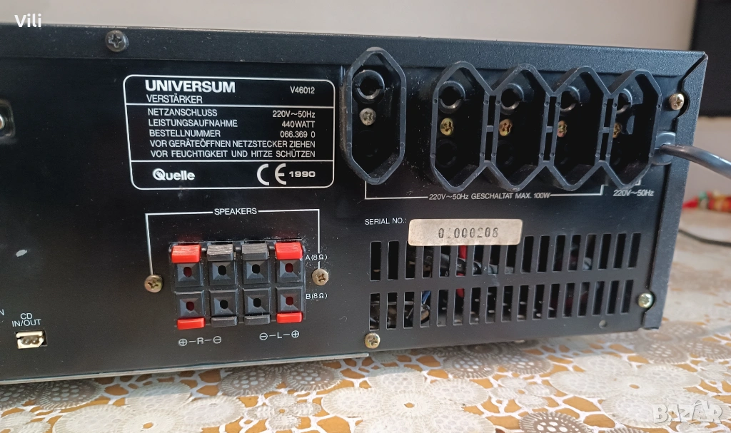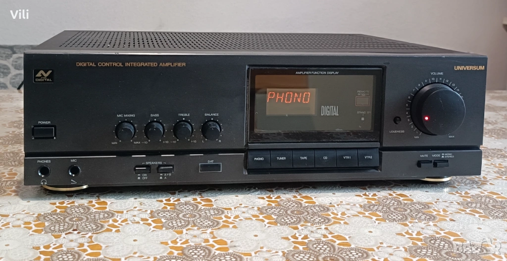 Продавам UNIVERSUM V46012–класически стерео усилвател с плътен звук и масивна конструкция.Подходящ за домашно Hi-Fi слушане, ретро аудио система и дори базово озвучаване с микрофон.