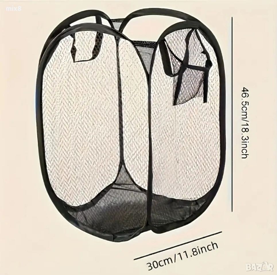 Сгъваемият мрежест кош за пране е практично решение за съхранение на мръсни дрехи. Той е проектиран да бъде лек, преносим и дишащ, предотвратявайки задържането на влага и неприятни миризми.