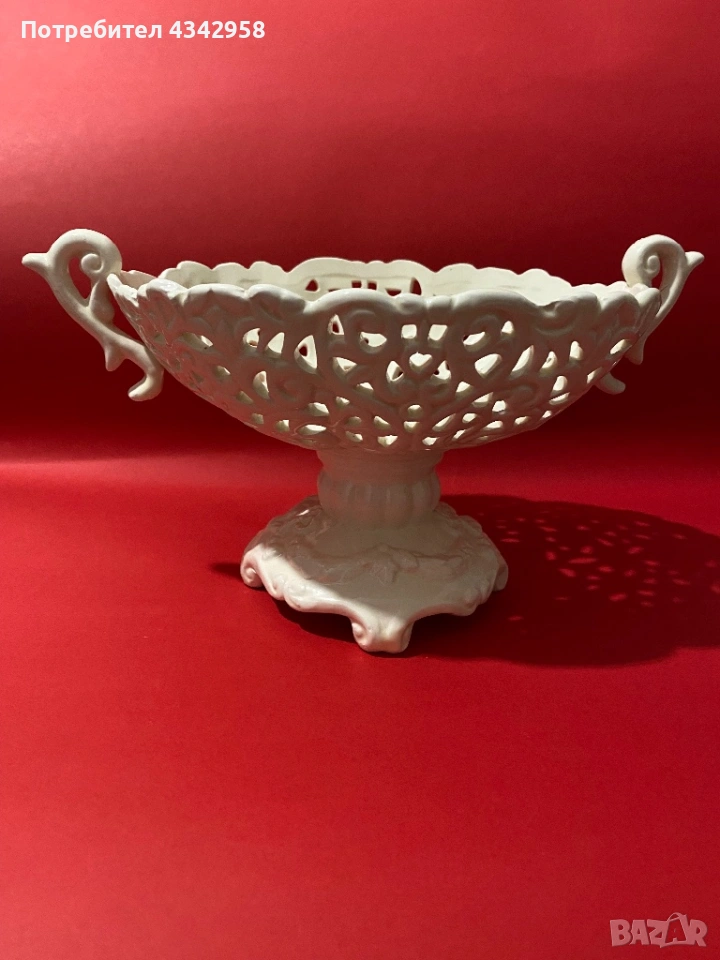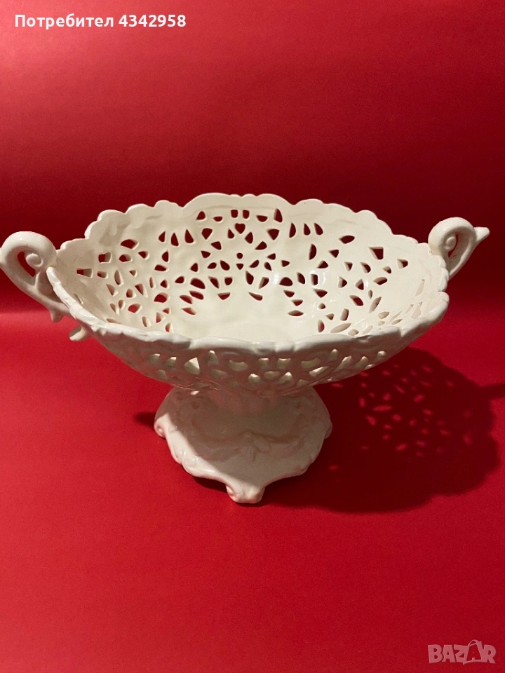 порцелан с ажурна изработка и класическа форма. Подходяща за бонбони, плодове или като декоративен акцент за интериор.