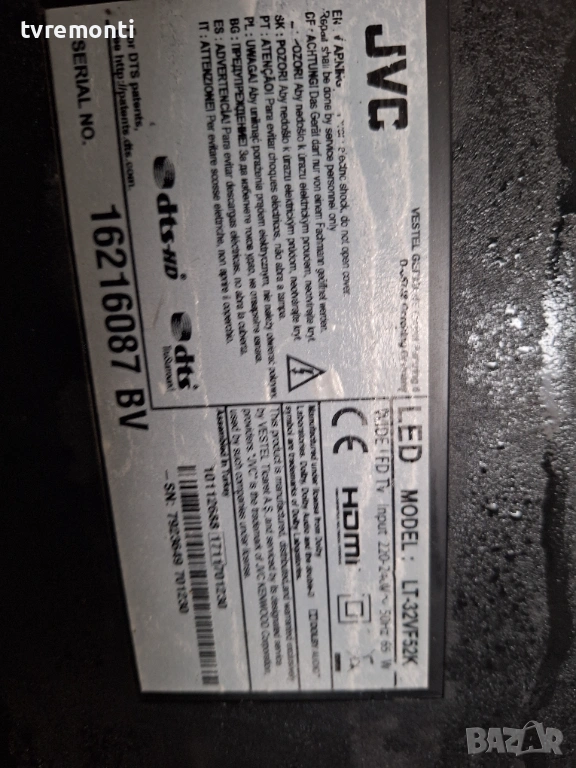 POWER BOARD ,17IPS62 за 32-инчов телевизор JVC LT-32VH52K, с дисплей VES315UNDA-2D-N11 Платката е използвана, но гарантирано работеща, демонтирана от телевизор със счупен дисплей. Тествана е от нашия техник.