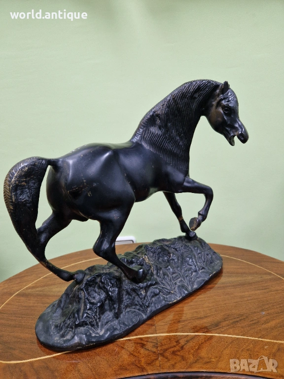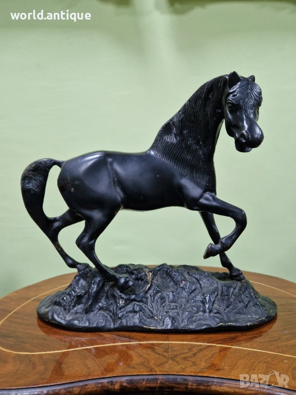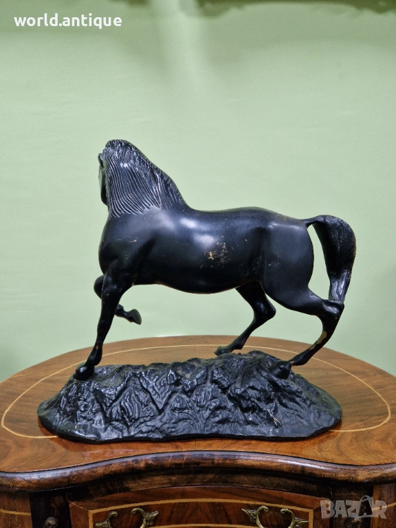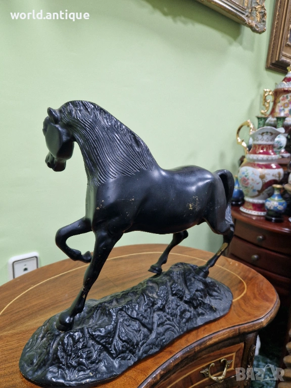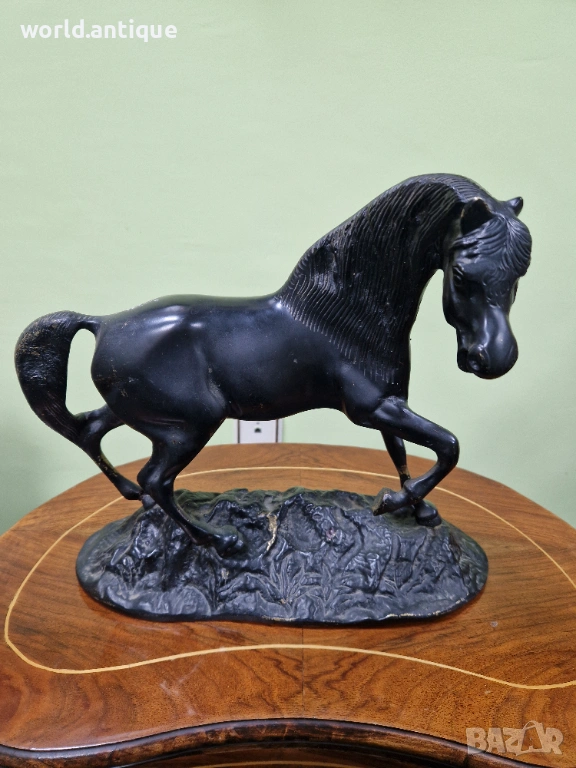 Продавам прекрасна много красива антикварна френска бронзова фигура статуетка в много добро състояние без забележки. Тежка здрава масивна. Размери дължина 33 см височина 28 см и ширина 13 см. Чудесно допълнение към интериора на Вашия дом офис вила ресторант хотел. Подходяща и за подарък. Работя с всички куриери. Отговарям бързо.