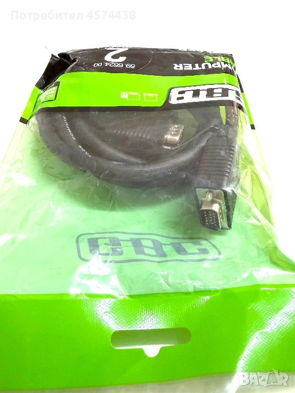 Нов VGA (D-Sub 15 pin) кабел, подходящ за свързване на компютър или лаптоп към монитор или проектор.