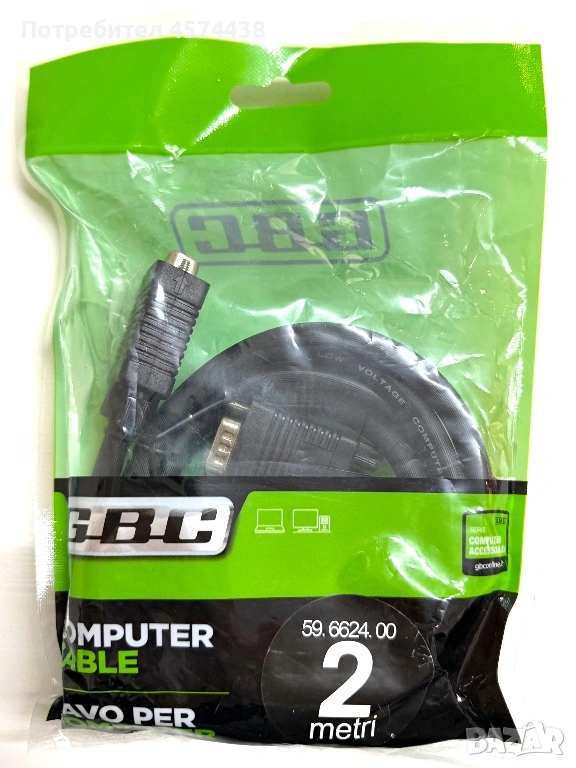 Оригинален VGA компютърен кабел (D-Sub 15 pin) 2М
