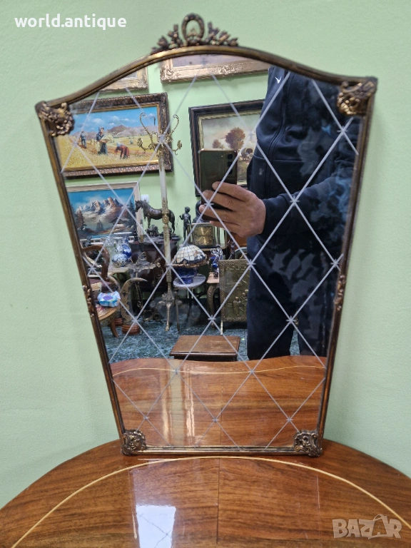 Страхотно антикварно английско бронзово огледало → Обява 53214374