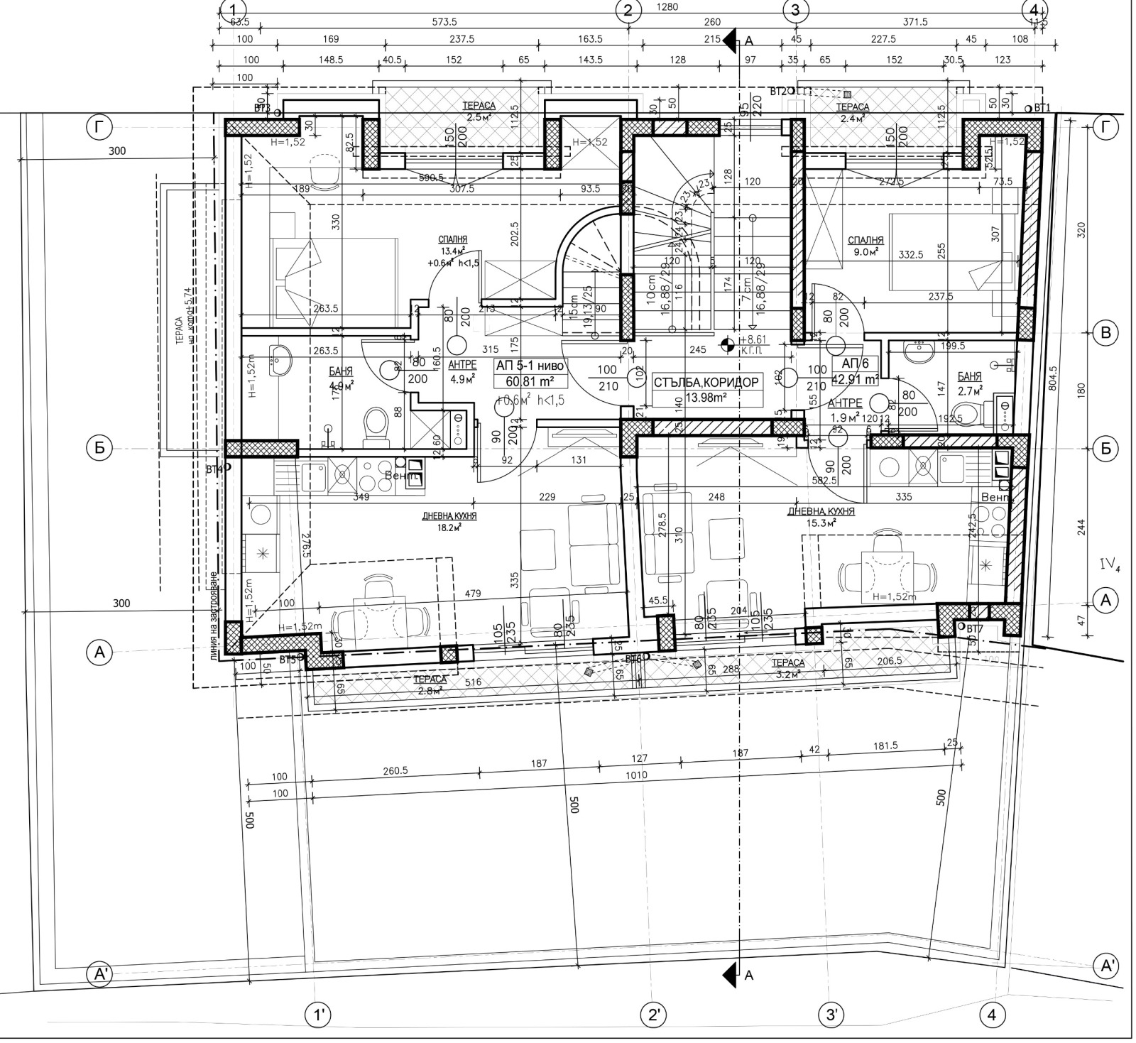 Обявената цена е за ТРИСТАЕН МЕЗОНЕТ - апартамент 05, състоящ се от: