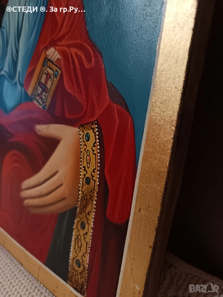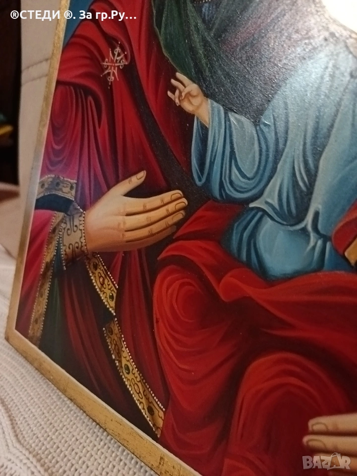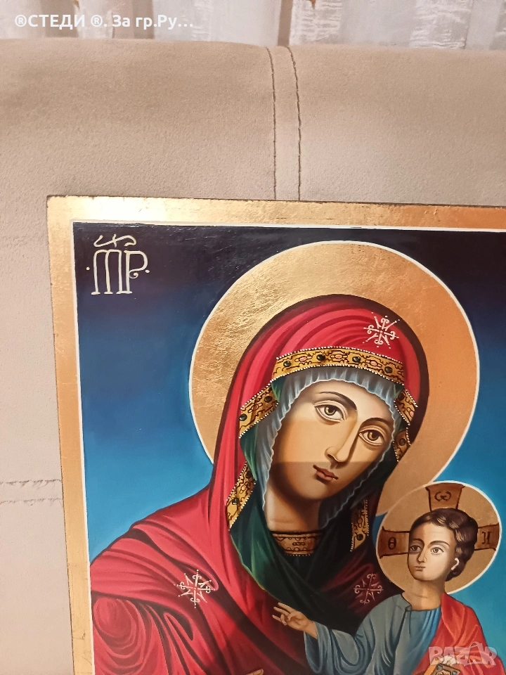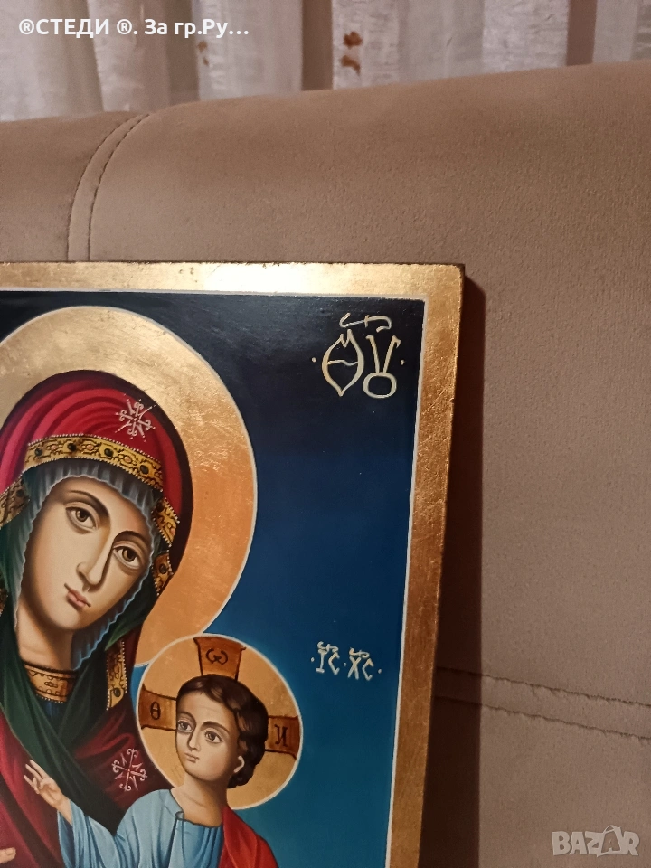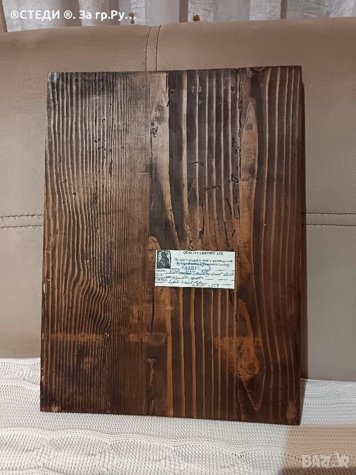 Иконата е с сертификат залепени на гърба. УДОСТОВЕРЕНИЕ ЗА КАЧЕСТВО Тази икона е изрисувана ръчно по оригинална средновековна българска технология! ВИКИУС ИМЕ: Богородица "Одигитрия-18 РАЗМЕР: 40-30 см. ТОЧНО На дърво ХУДОЖНИК: ДИМИТРОВА авг-2008.