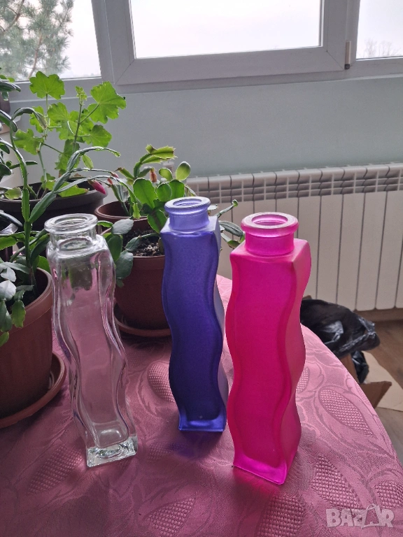 Три стъклени вази - различни цветове → Обява 53214603