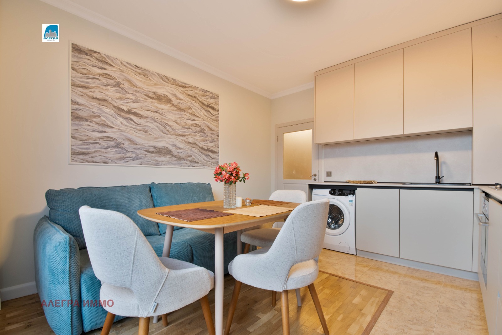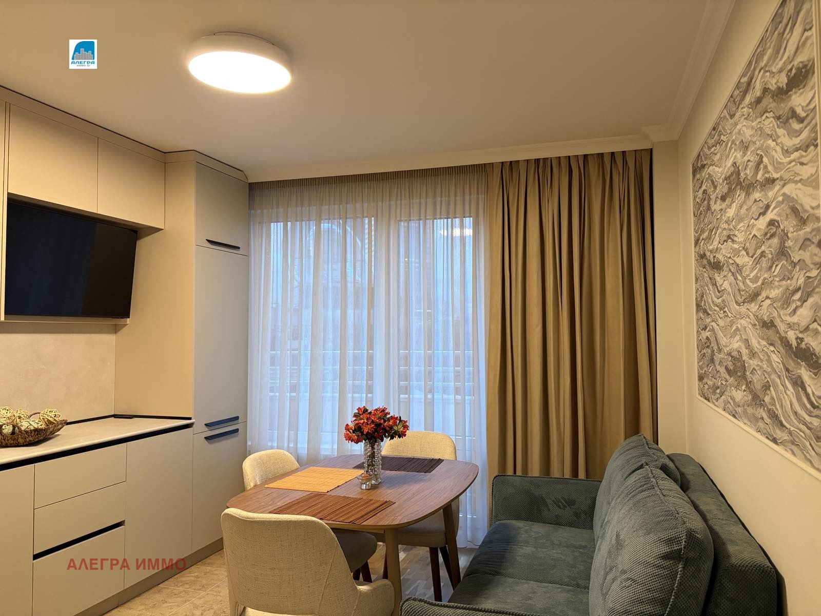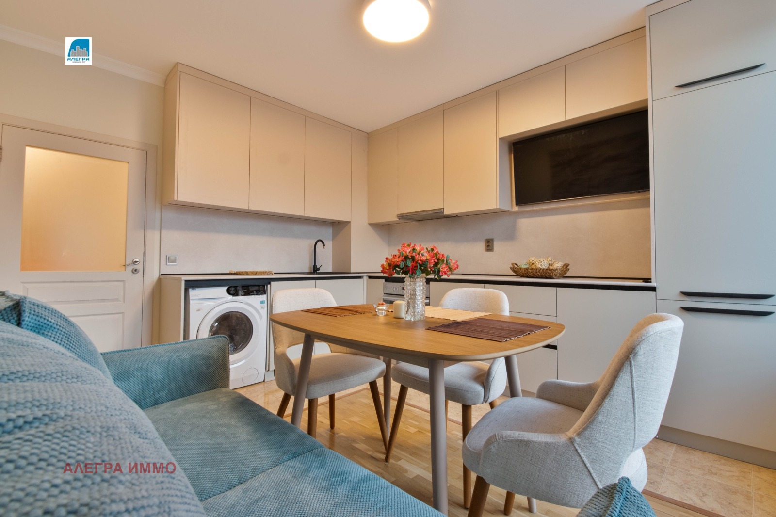 🏠ОБЗАВЕЖДАНЕ: Кухнята е модерна и напълно обзаведена, кухненските уреди са висок клас - пералня със сушилня, миялна, климатик, ТЕЦ. Предлага се с телевизор в дневната.