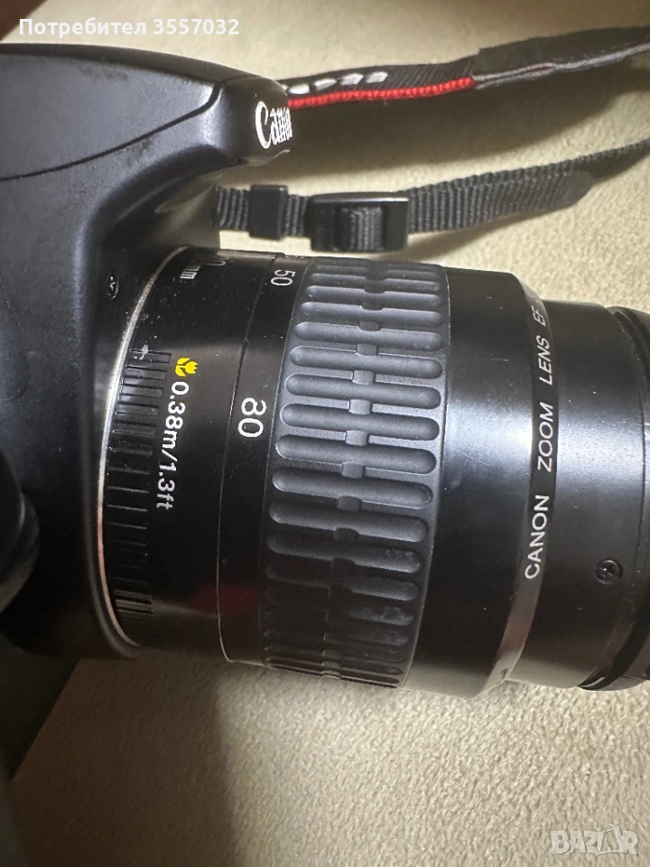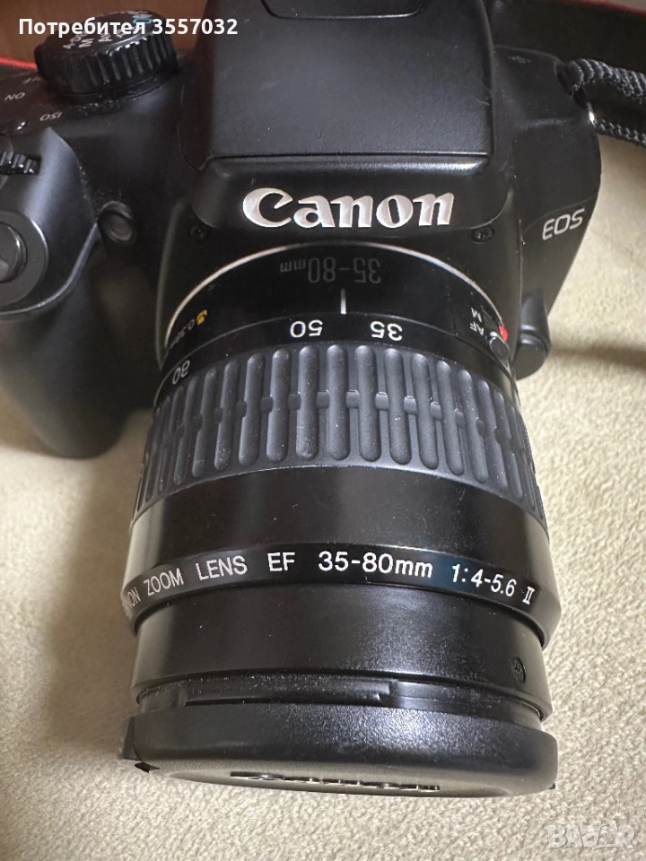 Фотоапарат Canon eos 1000D + обектив 35-80 мм + 3 батерии → Обява 53215321