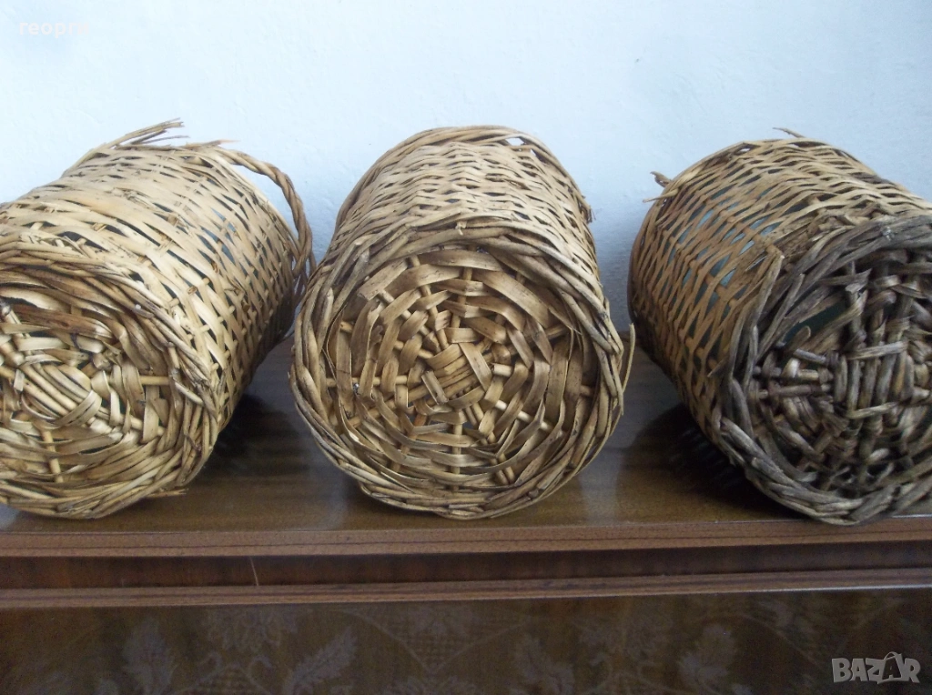 Големи буркани здрави с оплетка имат липсващи дръжки .