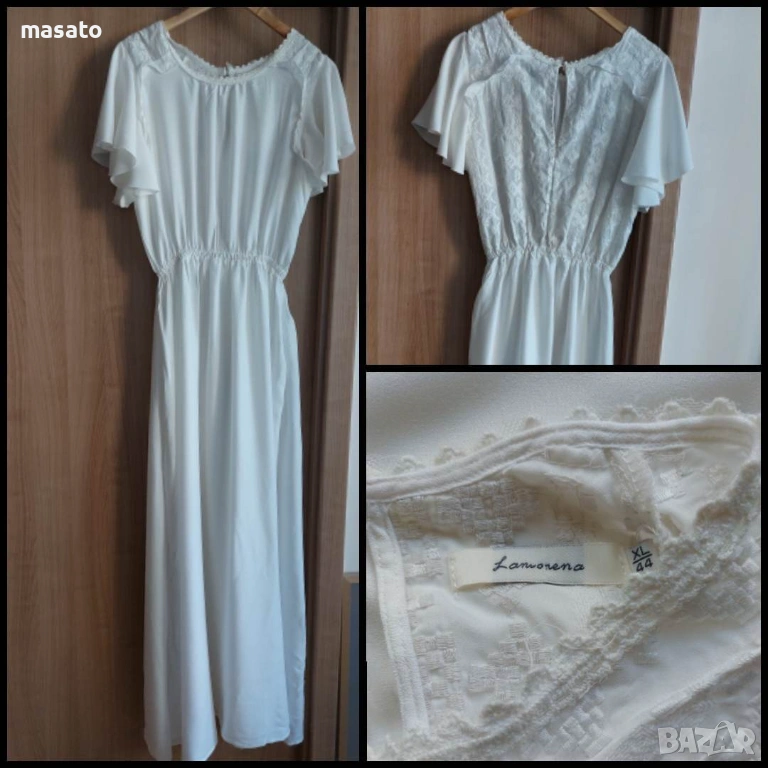 9.AYNAZ-бяла рокла,L-42,рамене-36см, ГО-48,талия-49,дължина-90,памук-50%, 15.34