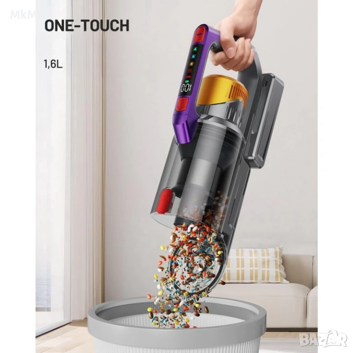 —70 минути работа и LED дисплей: Тази мощна безжична прахосмукачка има голям капацитет . Време за зареждане 4 часа. В минимален режим животьт на батерията е до 70 минути, а в максимален режим - до 20 минути. Големият цветен LED екран показва 3 регулируеми нива на засмукване, за да отговори на вашите ежедневни нужди от почистване.
