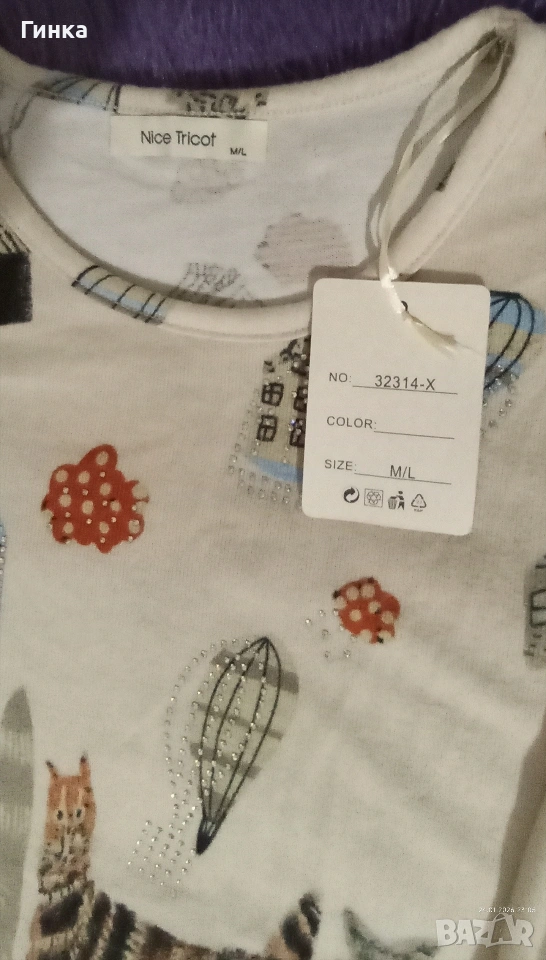 Симпатична дамска блуза с котки. С лъскави бели камъчета. Много приятна мека материя. Нова, с етикет.