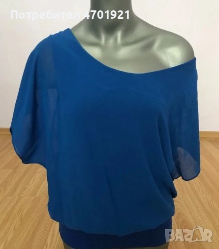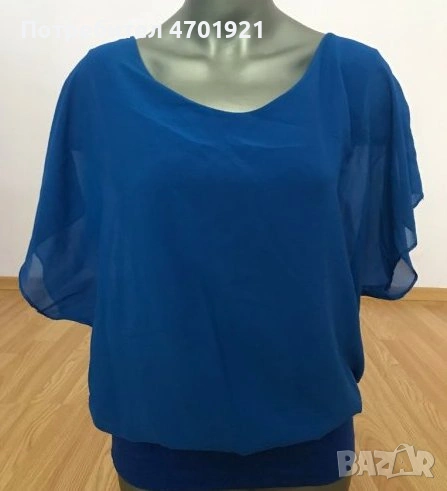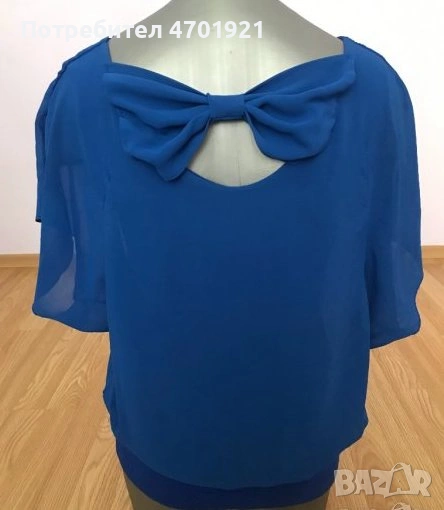 Синя дамска блуза с панделка на гърба → Обява 53216119