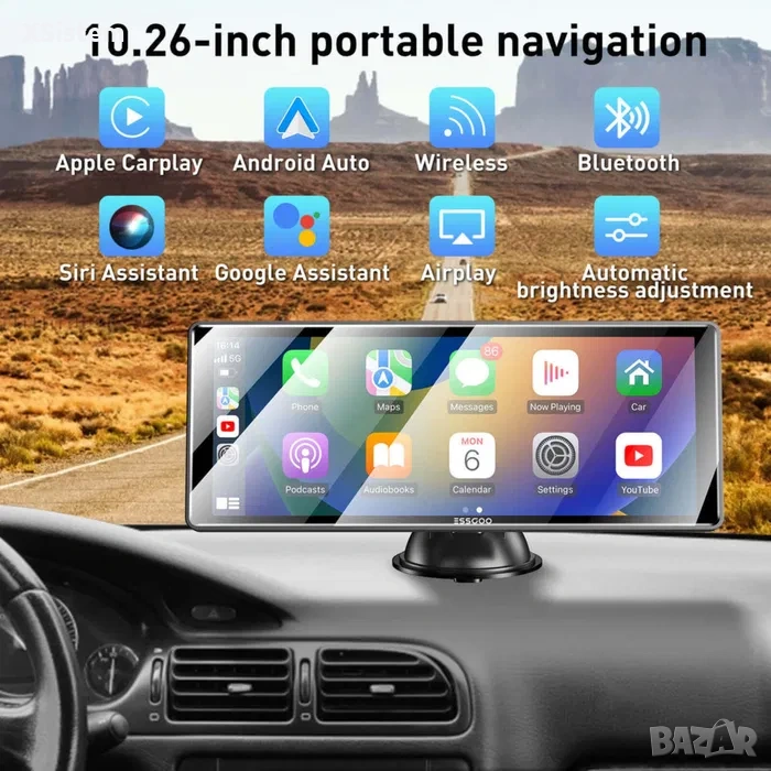 Изпитайте истинска безжична свързаност с нашето решение Portable Wireless Carplay и Android Auto. Просто свържете своя смартфон чрез Bluetooth и се насладете на достъп до любимите си приложения, навигационни системи и услуги за стрийминг на музика, всичко това без кабели.