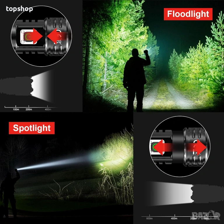 Бързо зареждане и Power Bank: Зарежда се чрез модерен Type-C порт. Фенерът разполага и с USB изход, чрез който можете да заредите телефона си при спешност.