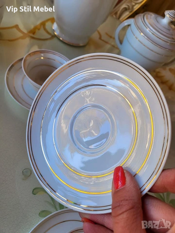 Фин, прозрачен порцелан със златни кантове за акцент. 🥰