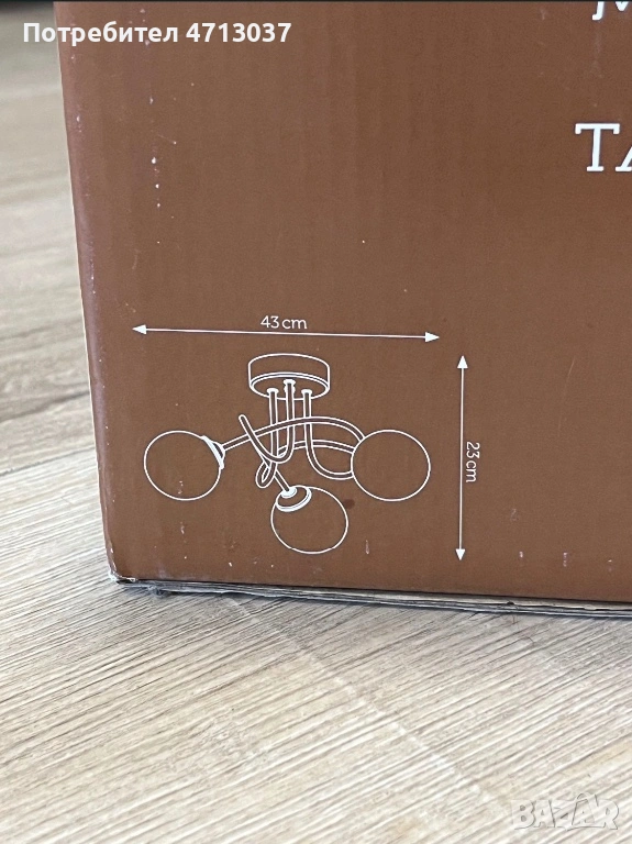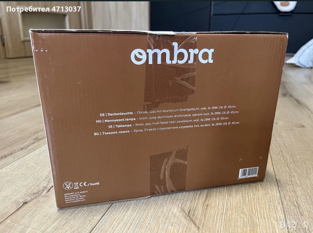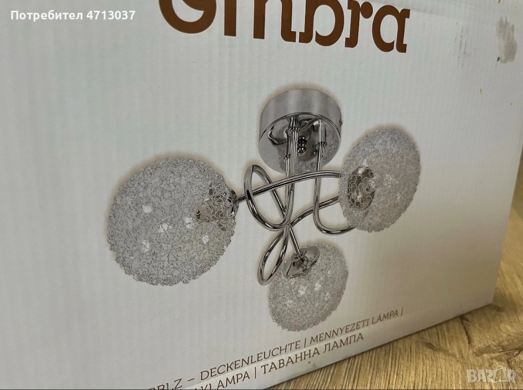 Дизайн: Стъкло с преплетена алуминиева тел, не включва 3х 28W крушки, G9, Ø: 43 см (от описанието на кутията)