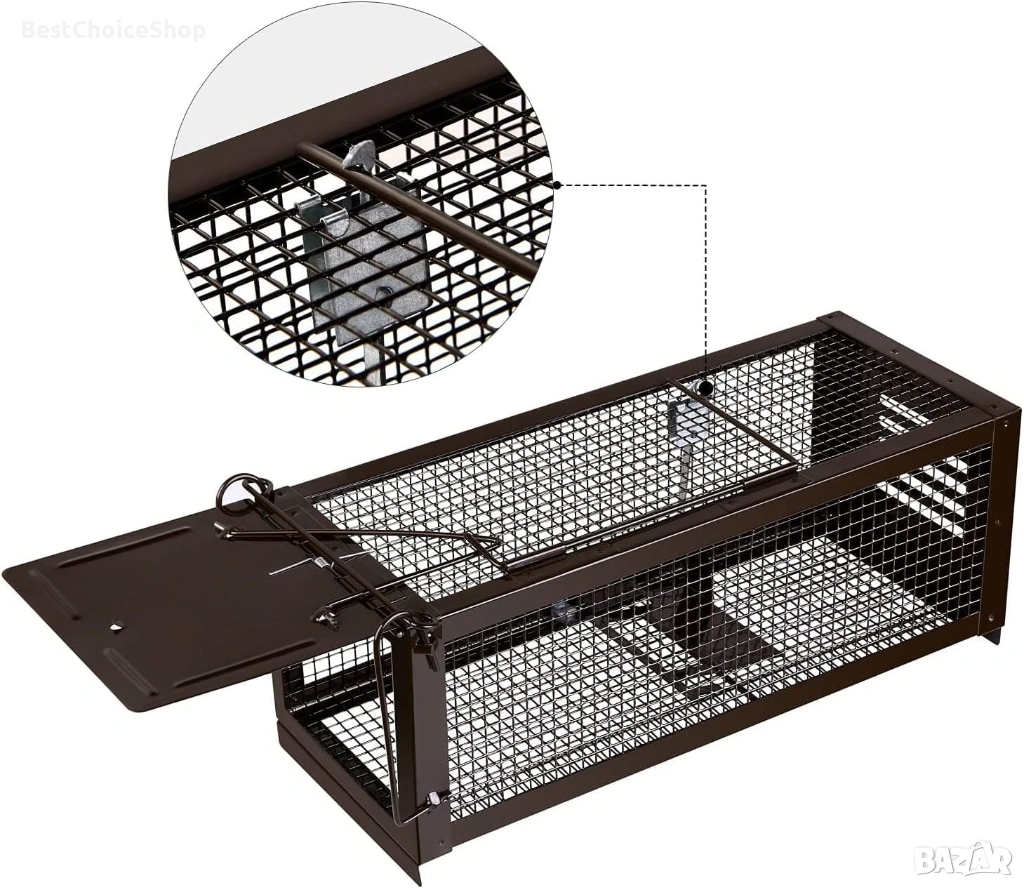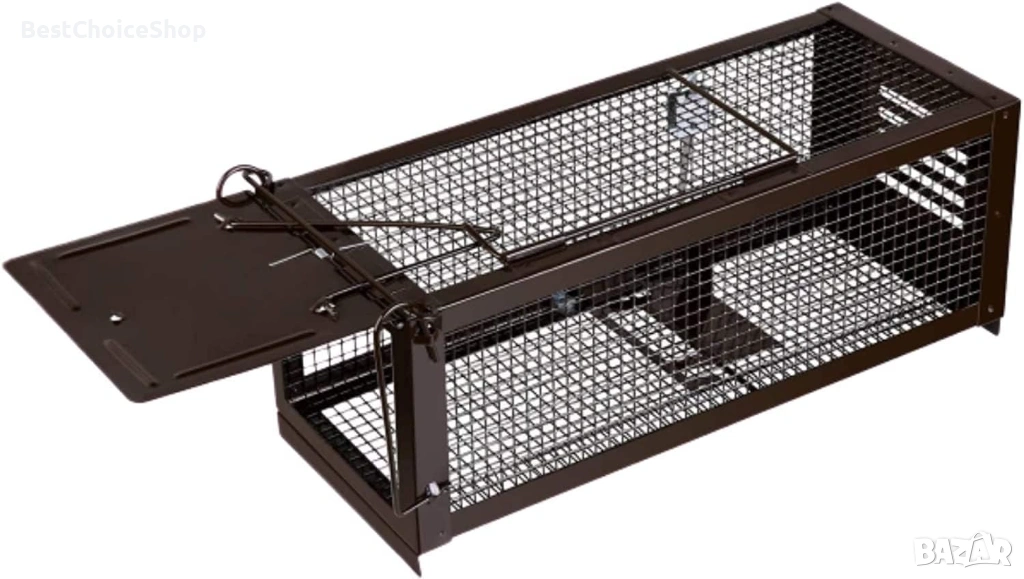 Хуманен метален капан, предназначен за улавяне на плъхове, мишки и други дребни гризачи, без да ги наранява. Здравата стоманена конструкция и чувствителният механизъм осигуряват бързо и сигурно улавяне. Подходящ за използване на закрито и открито – мазета, гаражи, складове, дворове, ферми.