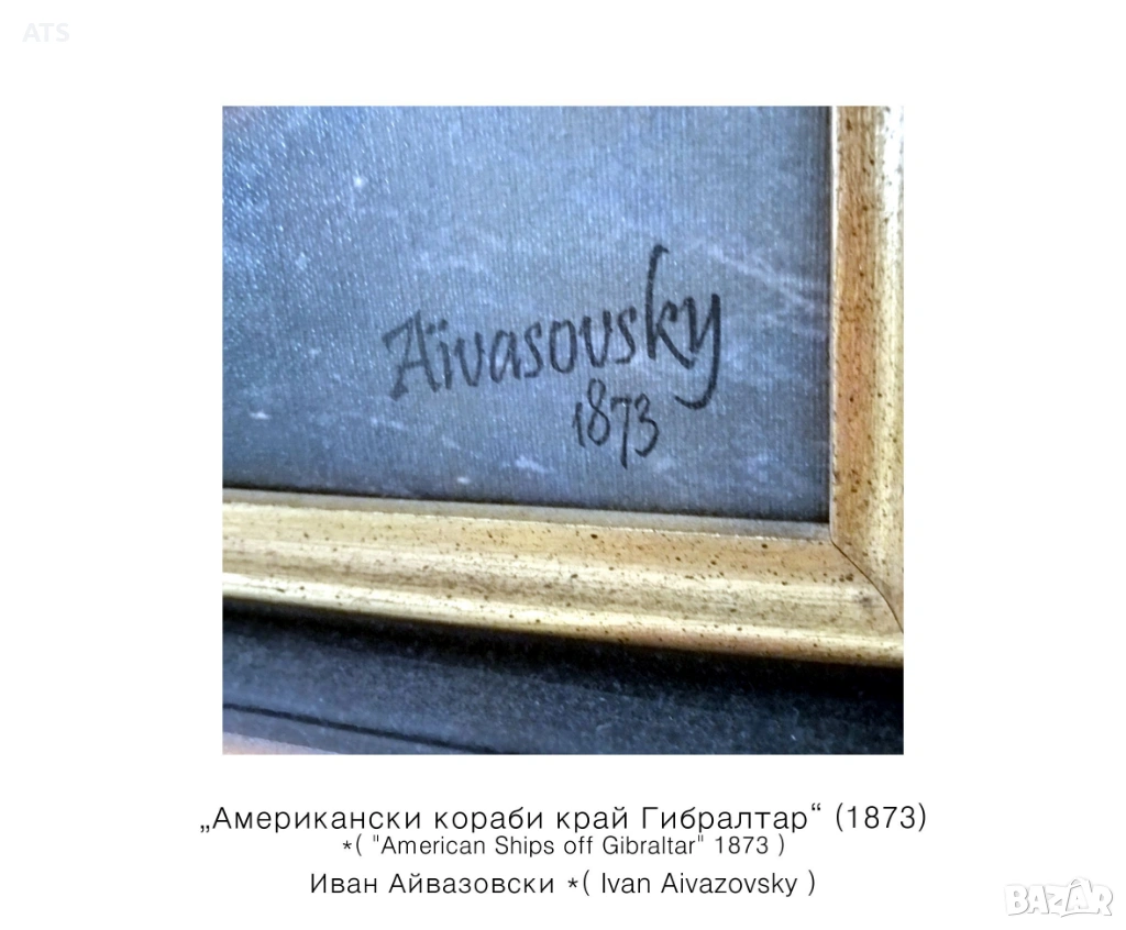 Репродукция на картина"Американски кораби край Гибралтар" от художник: Иван Константинович Айвазовски ( 1817 - 1900 г. ) той е руски художник от арменски произход, един от най-изтъкнатите маринисти