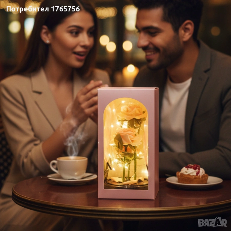 Декоративни рози в прозрачен купол и елегантна опаковка → Обява 53217734