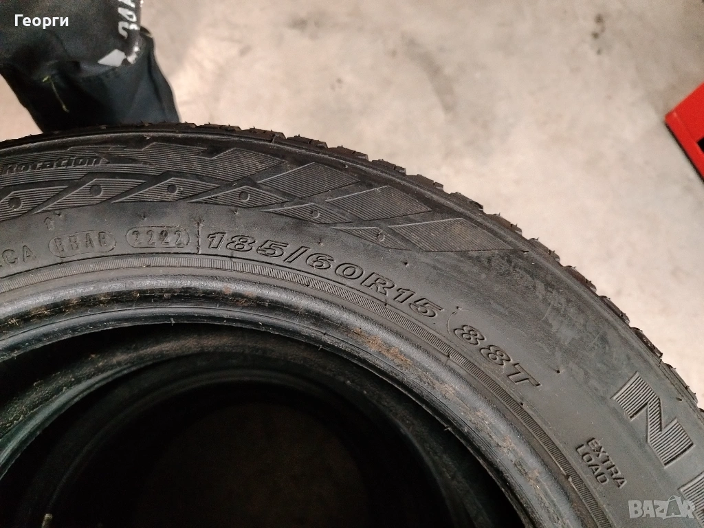 4бр.Nexen 185/60/15, ДОТ 2222, 8mm/7.7mm грайфер. Гумите са перфектни, без забележки, проверени са машинно за кривини, балони! Разполагаме с всякакъв размер нова и втора употреба гуми от 14-22 цола за автомобил, джип и бус.