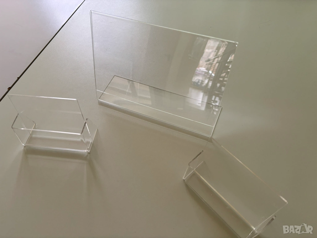 Продавам 3 бр. плексигласови стойки за брошури. Прозрачни и стабилно стоящи, като нови.