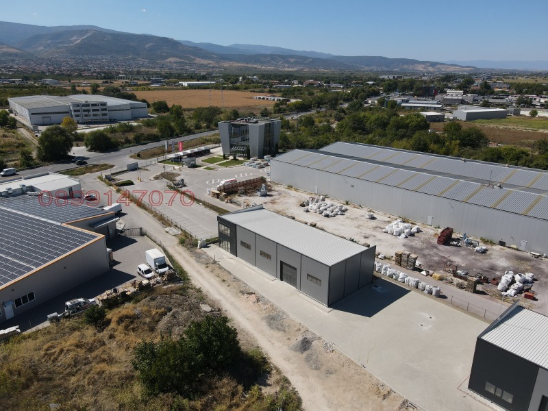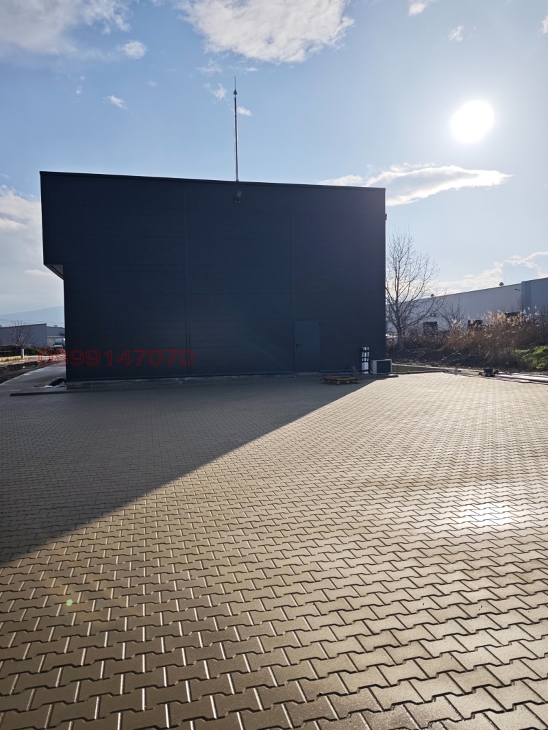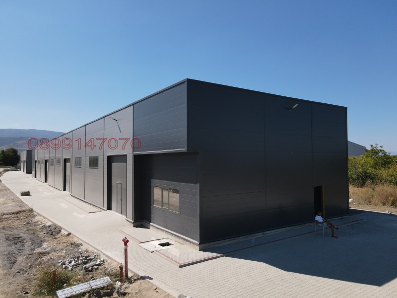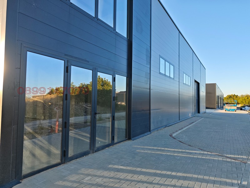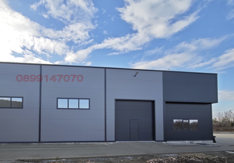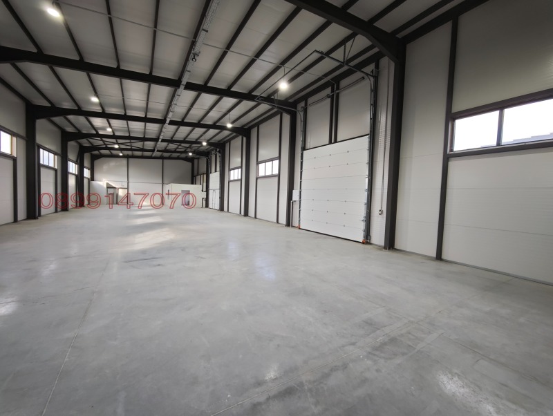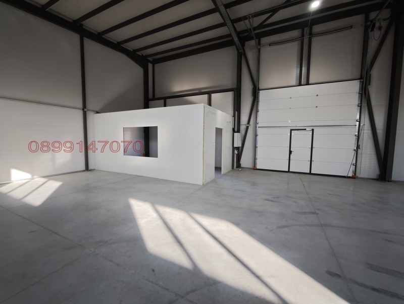 300 кв.м. складова площ. Настилка - шлайфан бетон, 1 бр. секционна врата 4м х 4м. Паркинг - плац 500кв.м. Метална конструкция с 10 см. Термо панел. Височина 6-7 метра.