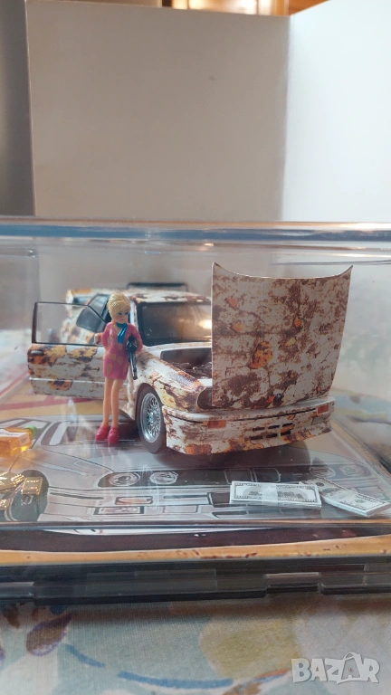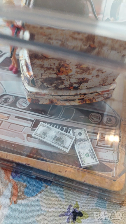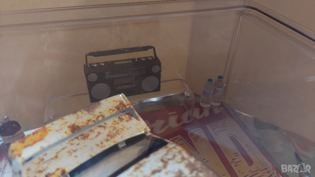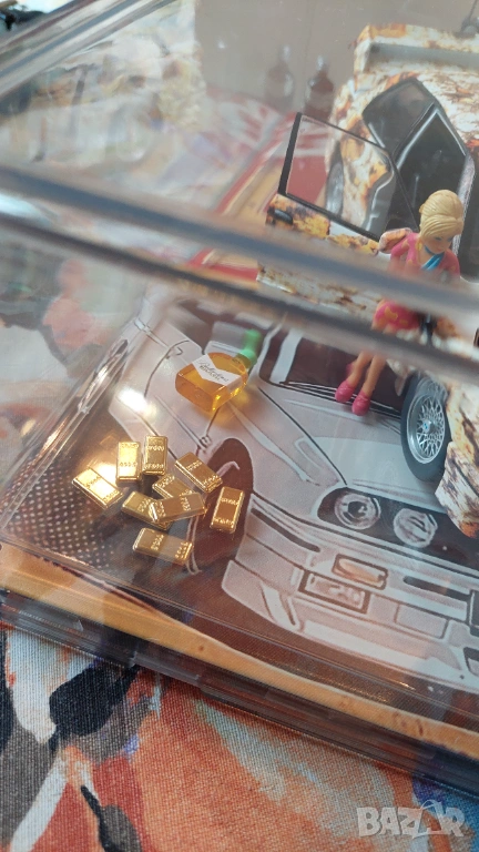 Касетофон , кюлчета злато , пачки долари , бутилки балантайс , вода евиан. Мадами с оръжие.