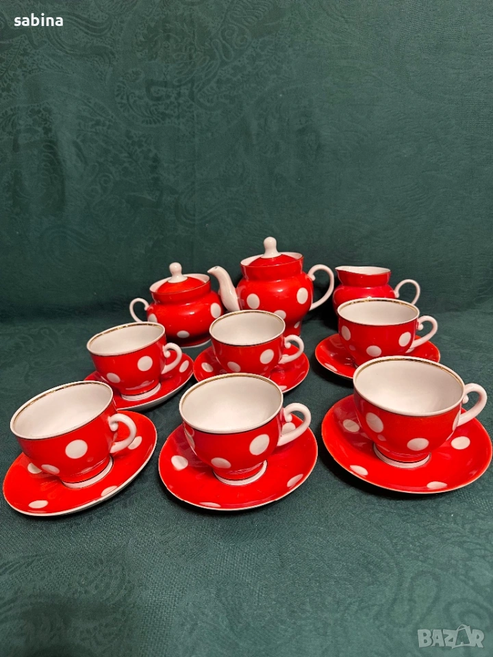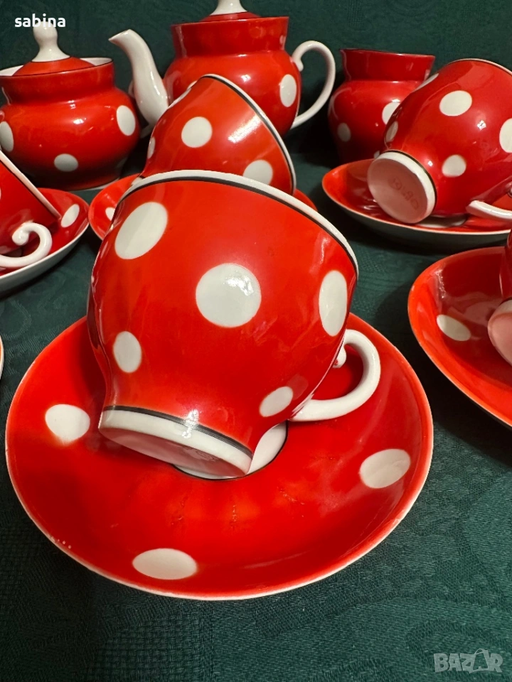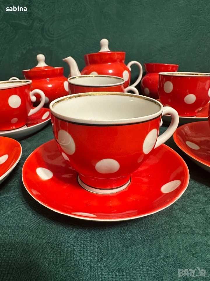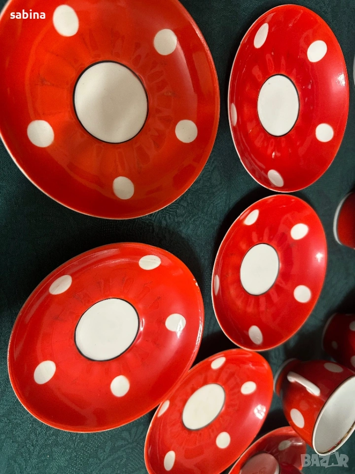 Съветски сервиз Барановски завод. Червен с бели точки → Обява 53218445
