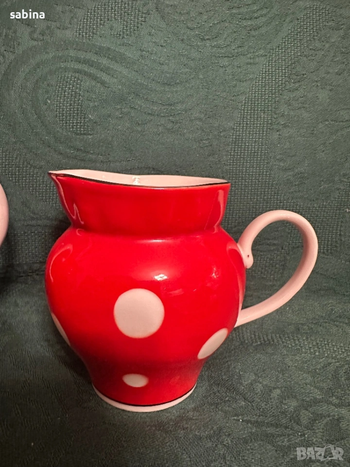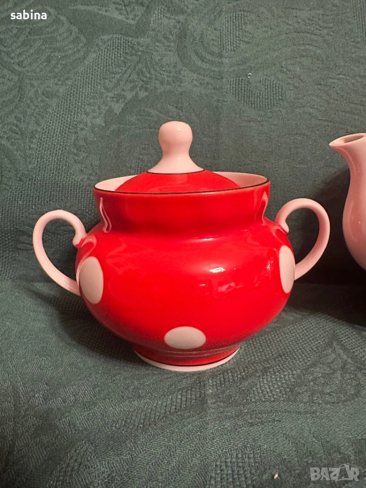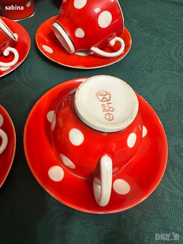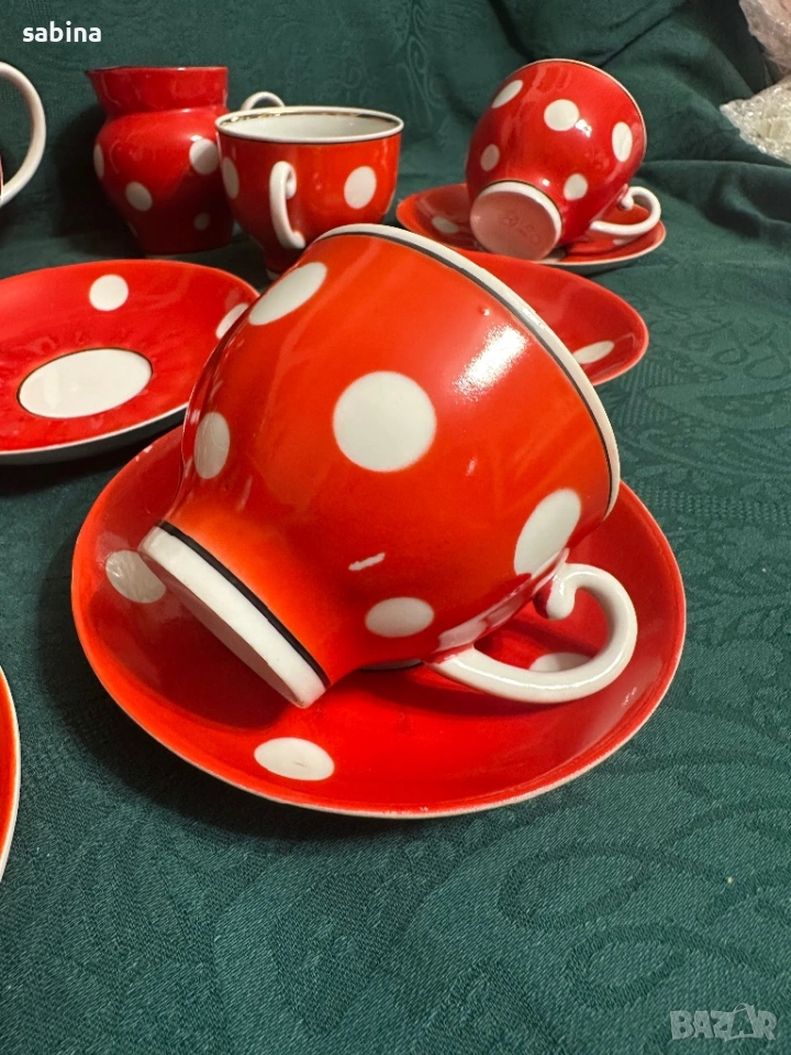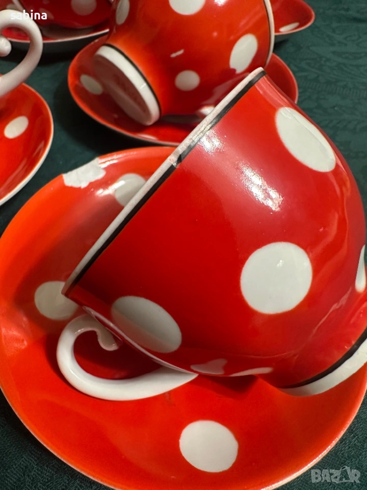 Съветски сервиз Барановски завод. Червен с бели точки → Обява 53218445
