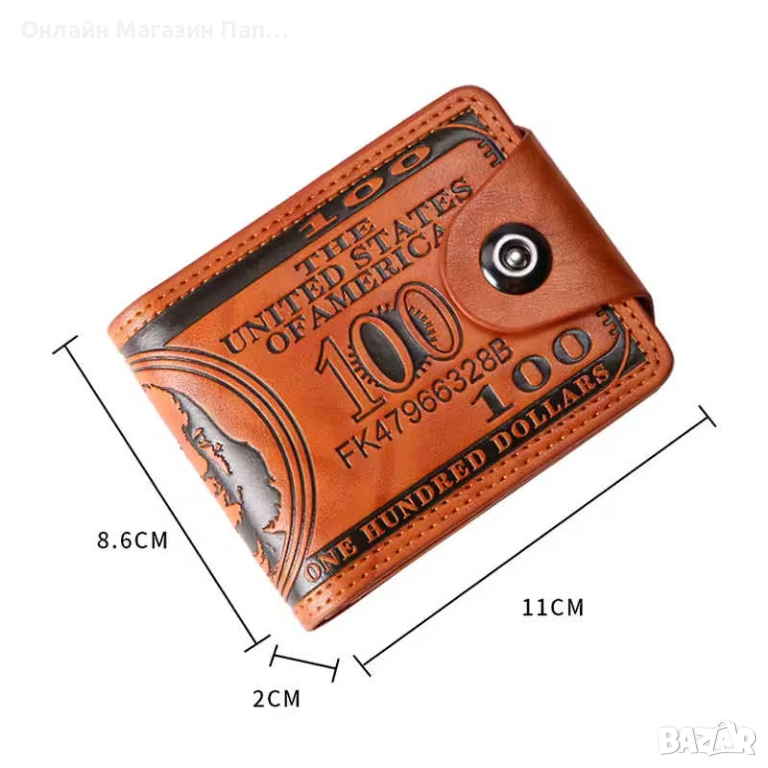 Идеален за ежедневна употреба или като изненадващ подарък, този портфейл с дизайн 100 долара е символ на класа и удобство.