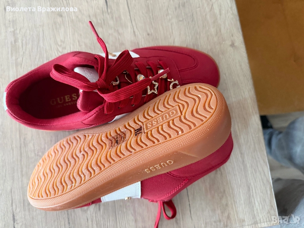 Червени спортни обувки нa Guess. Чисто нови. Никога не са обувани не ми станаха.38 номер.