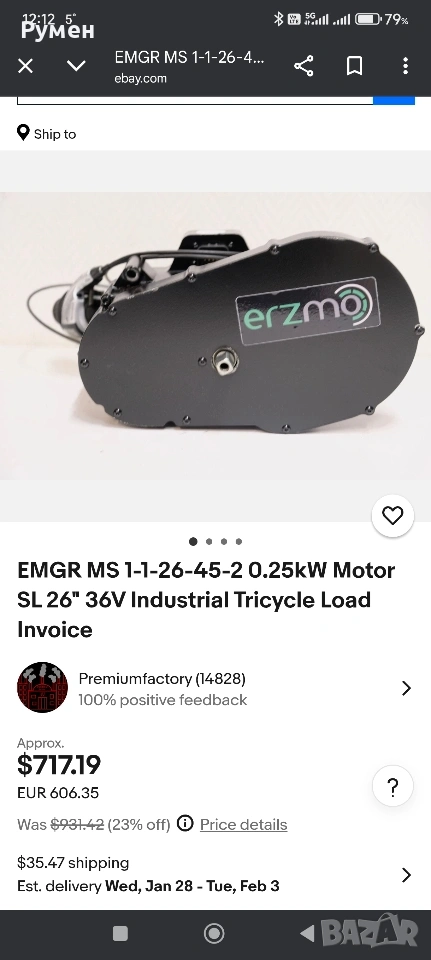 EMGR Pedelec задвижване за товарни велосипеди, 8A, 36V DC, 0.25 kW, ERZMO MS 1