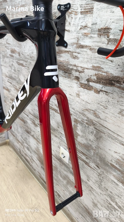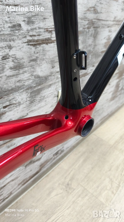 1. Карбонова ( 30T-24T HM UD Carbon ) оригинална рамка Ridley Fenix SLiC Disc, 2023 година, с UCI лиценз, с пълна интеграция на маркучите, с основни параметри: