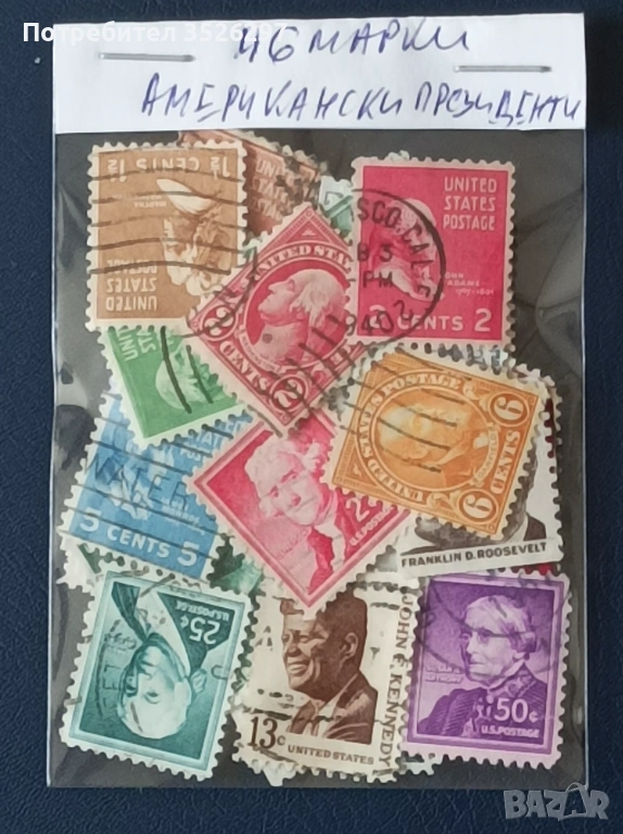 Колекция от 46 марки с ликовете на Американски президенти от началото на миналия до днешни дни. Марките са с печати и са тези от снимките на цена от 6 евро.
