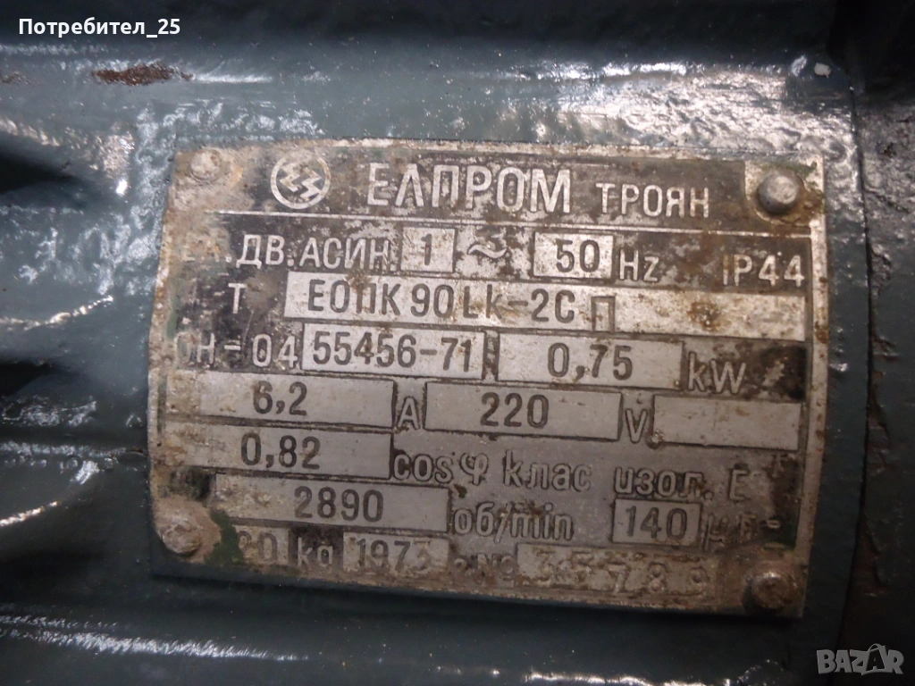 Мотора е 0,75 KW с голямата турбина. Помпата е с нови лагери,