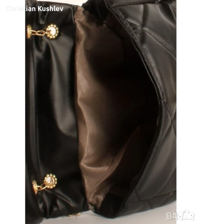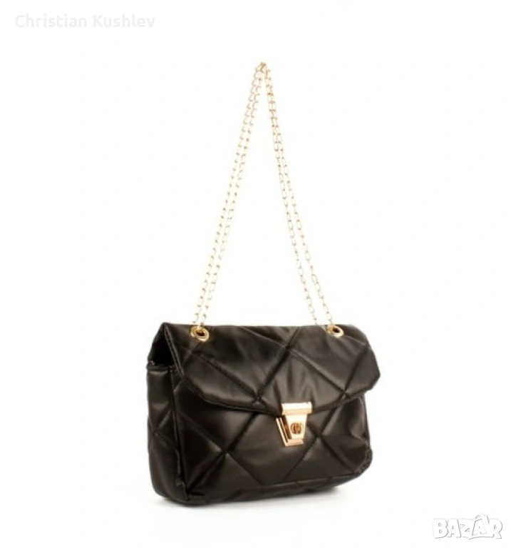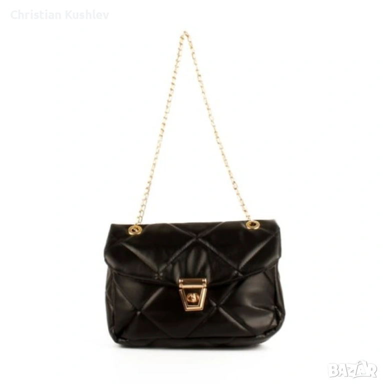 Дамска ватирана мека чанта в стилен дизайн и дръжка тип синджир → Обява 53219965