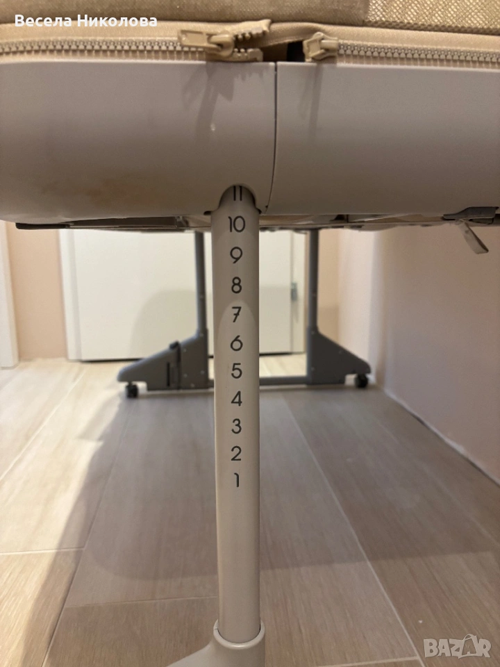 Бебешка кошара, уникално удобна. 11 степени на височина, с падаща преграда и възможност за махане на краката и легло тип монтесори. Има следи от употреба.