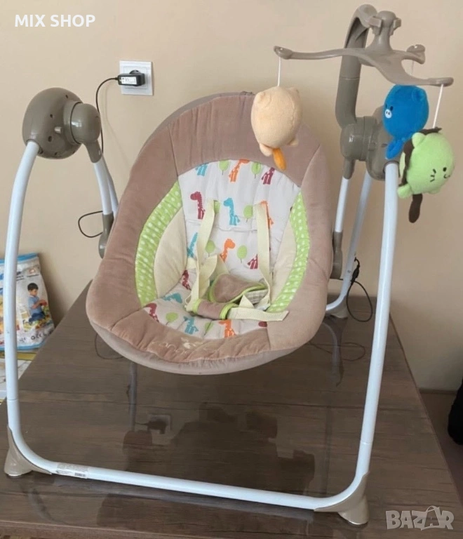 Детската люлка работи с адаптер или с батерии.