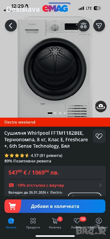Сушилня Whirlpool FFTM1182BEE, Термопомпа, 8 кг, Клас E, Freshc → Обява 53220539