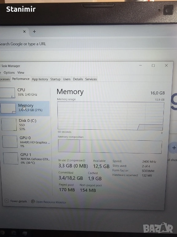 RAM памет: 16 GB DDR4 / 2 слота 2400 MHz