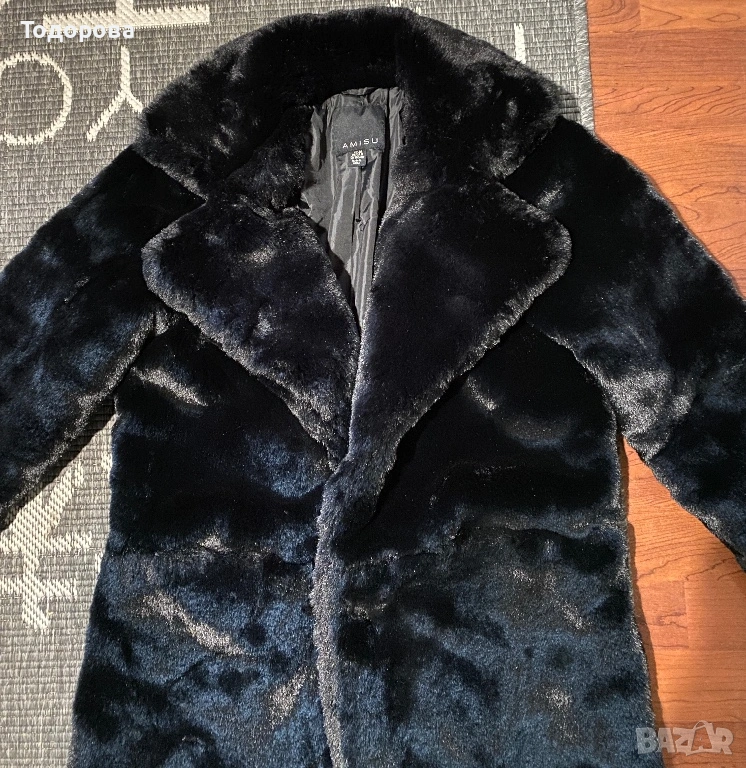 Луксозно черно палто с косъм → Обява 53220681